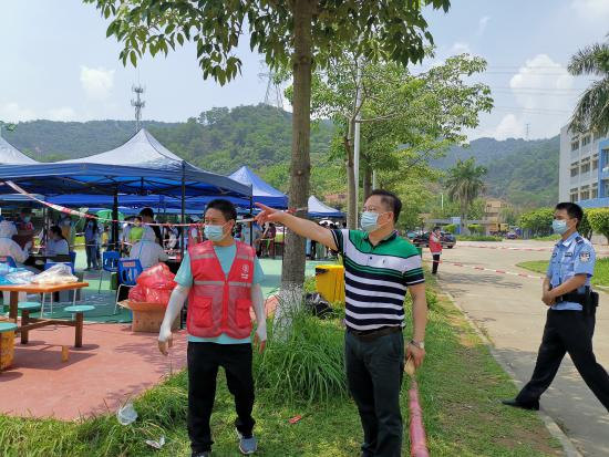 ▲區(qū)黨工委委員、管委會副主任黃宇健到檢測點指導(dǎo)樣本采集工作