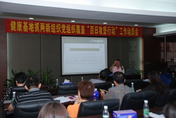 本網(wǎng)訊 為擴(kuò)大黨在兩新組織中的組織和覆蓋工作,5月18日,國(guó)家健康基地黨總支集中全體黨員專門召開(kāi)兩新組織黨組織覆蓋“百日攻堅(jiān)行動(dòng)”工作動(dòng)員大會(huì)。大會(huì)就“攻堅(jiān)行動(dòng)”的工作任務(wù)進(jìn)行了全面布署,并就相關(guān)的工作業(yè)務(wù)知識(shí)進(jìn)行了培訓(xùn)。大會(huì)還同時(shí)成立了國(guó)家健康基地抓兩新組織黨組織覆蓋“百日攻堅(jiān)行動(dòng)”領(lǐng)導(dǎo)小組,全體黨員和群眾一起就省市區(qū)黨代會(huì)有關(guān)精神進(jìn)行了傳達(dá)和認(rèn)真學(xué)習(xí)。