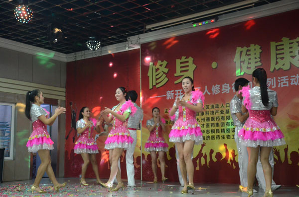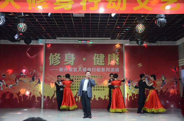 修身健康晚會(huì)節(jié)目?jī)?nèi)容豐富、精彩紛呈。精彩的節(jié)目由國(guó)家健康基地園區(qū)企業(yè)九州通、三才醫(yī)藥、海濟(jì)醫(yī)藥、華志科技和火炬開(kāi)發(fā)區(qū)藝術(shù)團(tuán)共同演繹,顯現(xiàn)了國(guó)家健康基地和新開(kāi)發(fā)區(qū)人良好的精神風(fēng)貌,積極參與全民修身活動(dòng)。會(huì)上,谷德慶主任向新開(kāi)發(fā)區(qū)人提出了倡議;健康基地領(lǐng)導(dǎo)也向基地園區(qū)企業(yè)發(fā)出了積極投身修身行動(dòng)的號(hào)召;開(kāi)發(fā)區(qū)百佳代表宣讀了《人人修身  個(gè)個(gè)給力——新開(kāi)發(fā)區(qū)人修身倡議書(shū)》!冻h書(shū)》中,開(kāi)發(fā)區(qū)流動(dòng)人口管理辦公室向全區(qū)所有新開(kāi)發(fā)區(qū)人發(fā)出倡議:從自身做起,從小事做起;做“四有”新開(kāi)發(fā)區(qū)人;弘揚(yáng)社會(huì)正氣,引領(lǐng)文明風(fēng)尚。當(dāng)晚,代表新開(kāi)發(fā)區(qū)人修身系列行動(dòng)的修身健康、修身普惠、修身奉獻(xiàn)、修身低碳、修身共融共五個(gè)代表隊(duì)的人員上臺(tái)作了展示。晚會(huì)最后舉行了新開(kāi)發(fā)區(qū)人修身系列行動(dòng)的啟動(dòng)儀式,由劉少山副書(shū)記宣布新開(kāi)發(fā)區(qū)人修身系列行動(dòng)正式啟動(dòng)。拉開(kāi)了新開(kāi)發(fā)區(qū)人修身行動(dòng)的序幕!